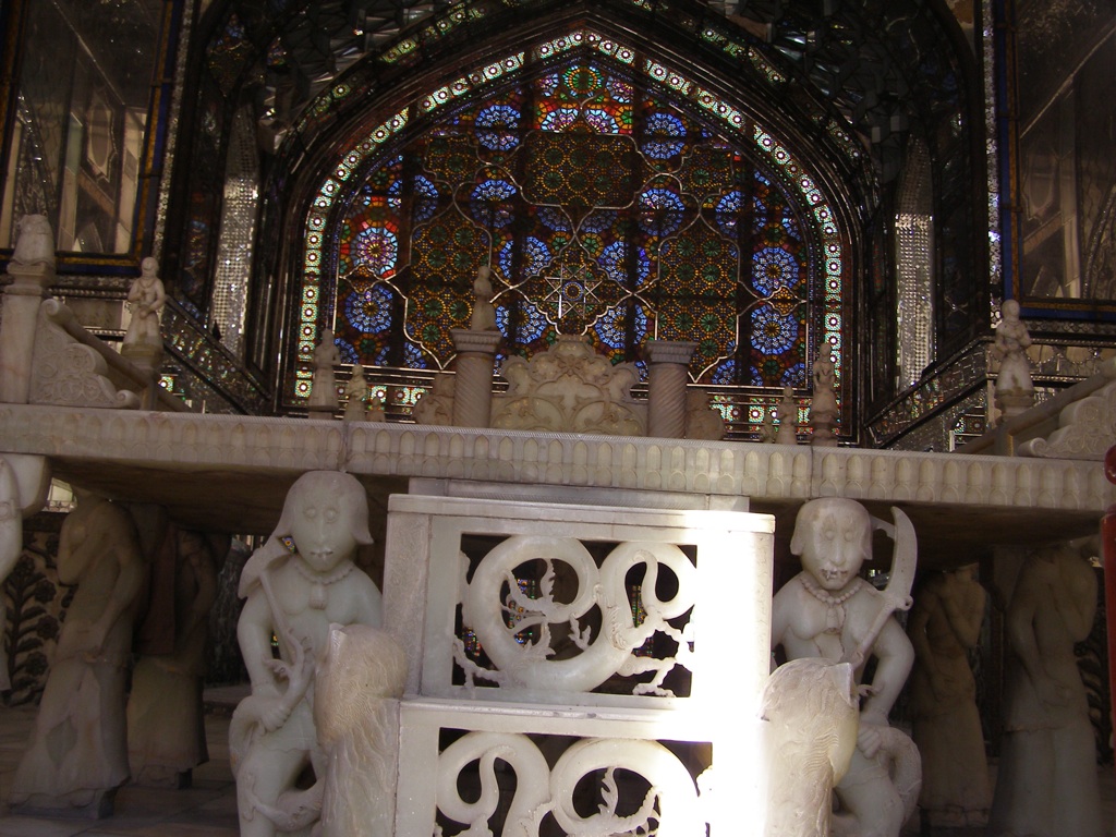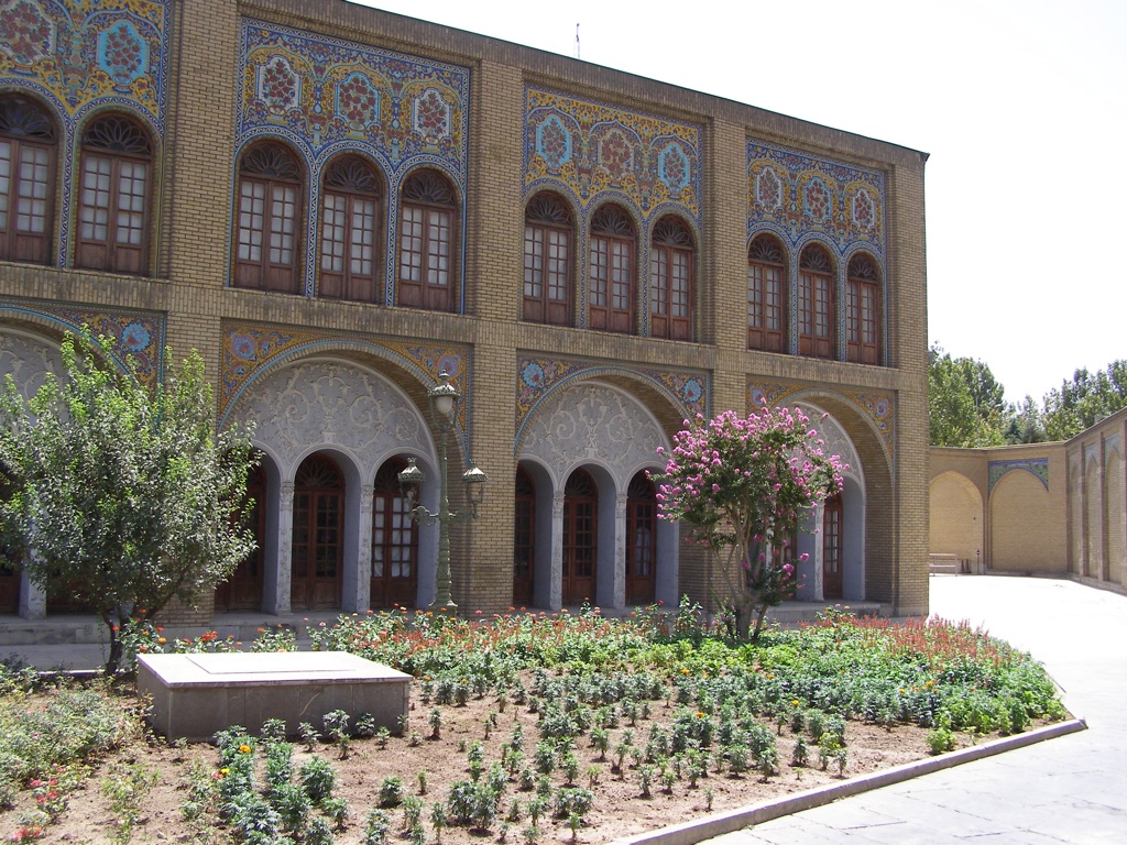 Palatul are o istorie destul de interesanta, pe care n-o reiau; daca va intereseaza, gasiti detalii pe Wikipedia. Din pacate, pozele de prezentare difera de realitate; bazinul decorativ este uscat, din loc in loc prin curte se afla roabe, caramizi si saci de ciment – se reconstruieste, se renoveaza. Intrarea e iar pazita de un militar cu pusca-n spate, iar tipul din ghereta de bilete stie engleza, deci ne descurcam repede. Primesc 6 bilete care mie mi se par identice, dar se pare ca fiecare e pentru intrare intr-un obiectiv anume. Pret modic, nici 2 euro pentru toate 4. Incepem plimbarea la pas; tot obiectivul e alcatuit din cladiri construite in jurul unei mari gradini, cu peretii si usile intr-un stil total aparte, foarte incarcat si colorat. Parere proprie? tinde grav spre kitsch, parere care se va adanci odata cu vederea interiorului cladirilor. Exista o galerie de arta, cu tablouri ale secolului 19 infatisand diverse scene traditionale. Exista o casa de primire oficiala (in care din pacate nu este permis fotografiatul), cu un salon intr-adevar impresionant din punct de vedere al luxului si folosit pentru primirea diverselor personalitati. Salonul asta oficial e punctul principal in atribuirea verdictului de kitsch: la mare cinste e pus faptul ca tot tavanul si peretii unei camere imense au ca decoratiune modele complicate construite din … bucati de oglinda. In rest, covoare persane mari cat un teren de tenis si multe multe motive colorate si complicate. Mai de interes mi s-a parut expunerea unui meteorit imens, facut cadou in acelasi secol 19 sahului acelei perioade.
