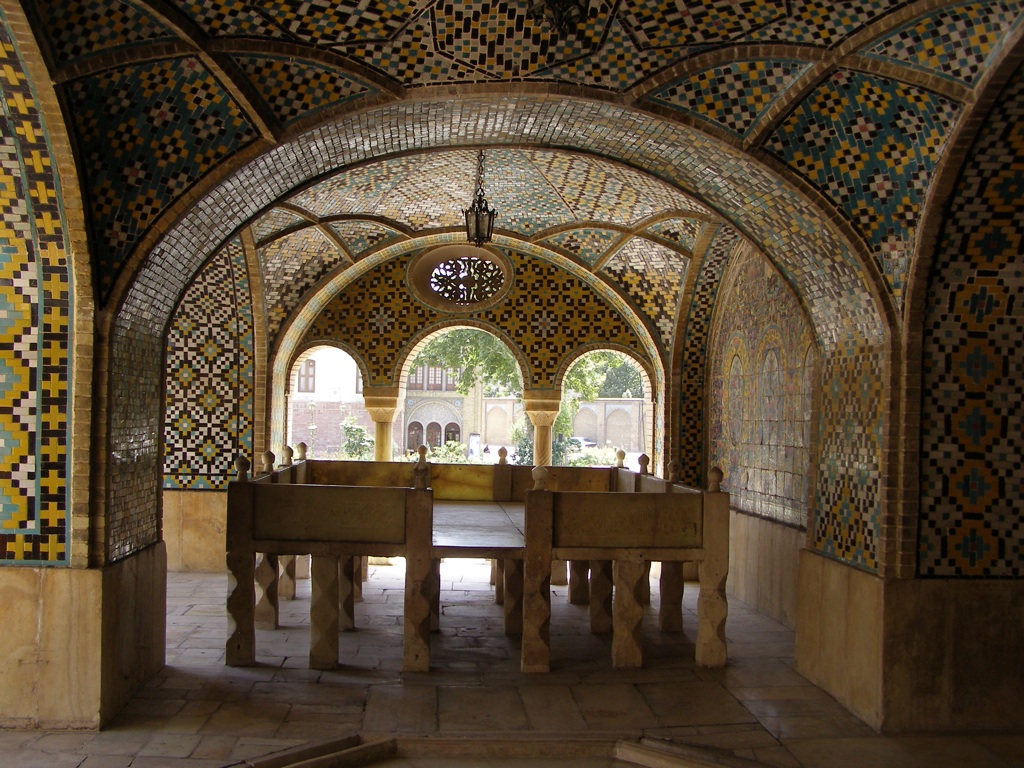 Weekendul aici este joia si vinerea, destul de ciudat, dar adaptarea nu e asa grea in deplasare, pentru ca oarecum pierzi notiunea timpului. Daca “sambata” adica joia, am petrecut-o pe baza de somn, room service si durere de cap, duminica am decis ca-i pacat sa nu exploram nitel si obiectivele turistice din zona. Ca atare, punand in balanta distanta si nivelul de interes, am ales sa vizitam palatul Golestan. Comandam taxiul, si la drum. Fiind “duminica”, orasul e destul de parasit si toate semafoarele pe intermitent in miezul zilei. In drum, ajungem la un punct critic: una din strazi e blocata de niste bariere improvizate, pazite de 2 militari intr-o ghereta. Incepe parlamentarea intre sofer si unul din ei, in care apar si eu ca subiect de discutie (m-am prins de asta in momentele in care soferul ma arata cu degetul si militarul se holba la mine), dar pana la urma se inteleg si trecem de bariera. Din cate am inteles ulterior, problema era ca palatul Golestan se afla intr-o zona cu multe institutii guvernamentale, care in perioada asta delicata sunt tinute “in perimetru controlat”.